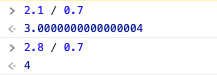 js는 이런 무한소수가 나오면 한번 반올림을 해서 값이 다르게 나온다고 합니다